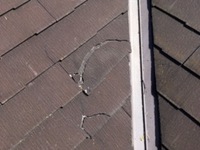 屋根に上がって確認すると全体的には問題の無いように見えましたが、スレート瓦に数か所クラックではなく、完全に割れてしまっている部分がありました。