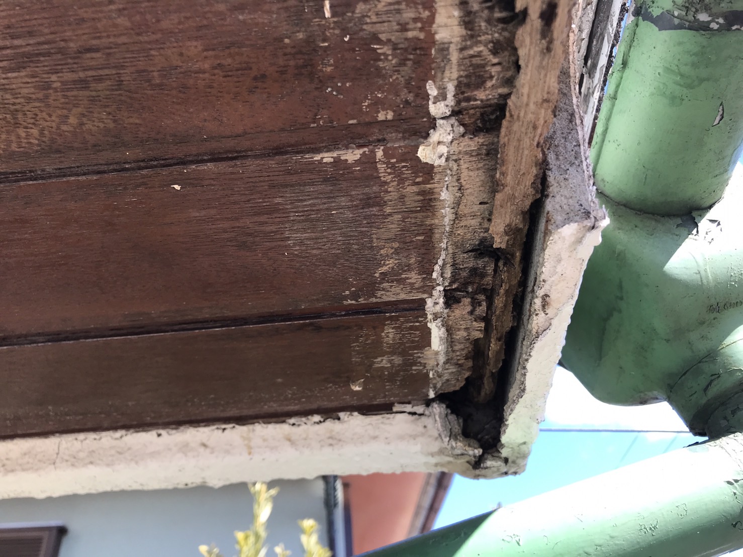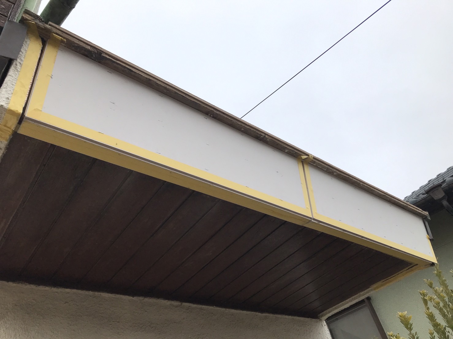 以前に二階の窓廻りからの雨漏りで修繕工事をさせていただいたお客様から、「一階の破風が落ちた。」との連絡が入り、現調に伺いました。