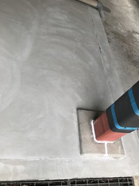 この時に密着性や耐用年数を保つ為に既存の土間コンクリートを充分に乾燥させてからの施工を行うことが重要です。鉄骨の通し柱とコンクリートの接合部はシーリング処理をします。