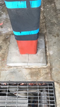 ポーチの柱の近辺に散水をし調査をすると、やはり地下室の天井に浸水しました。