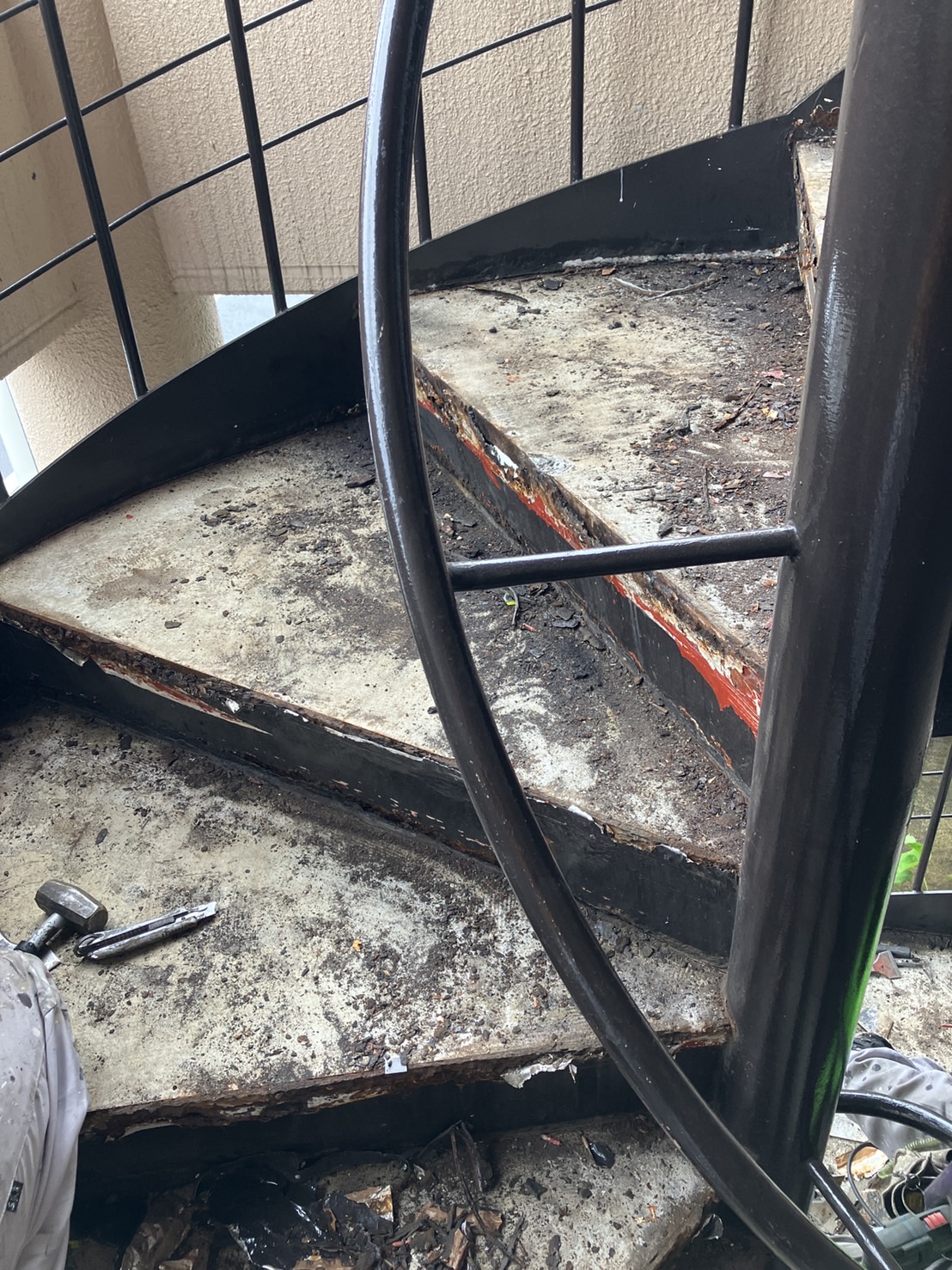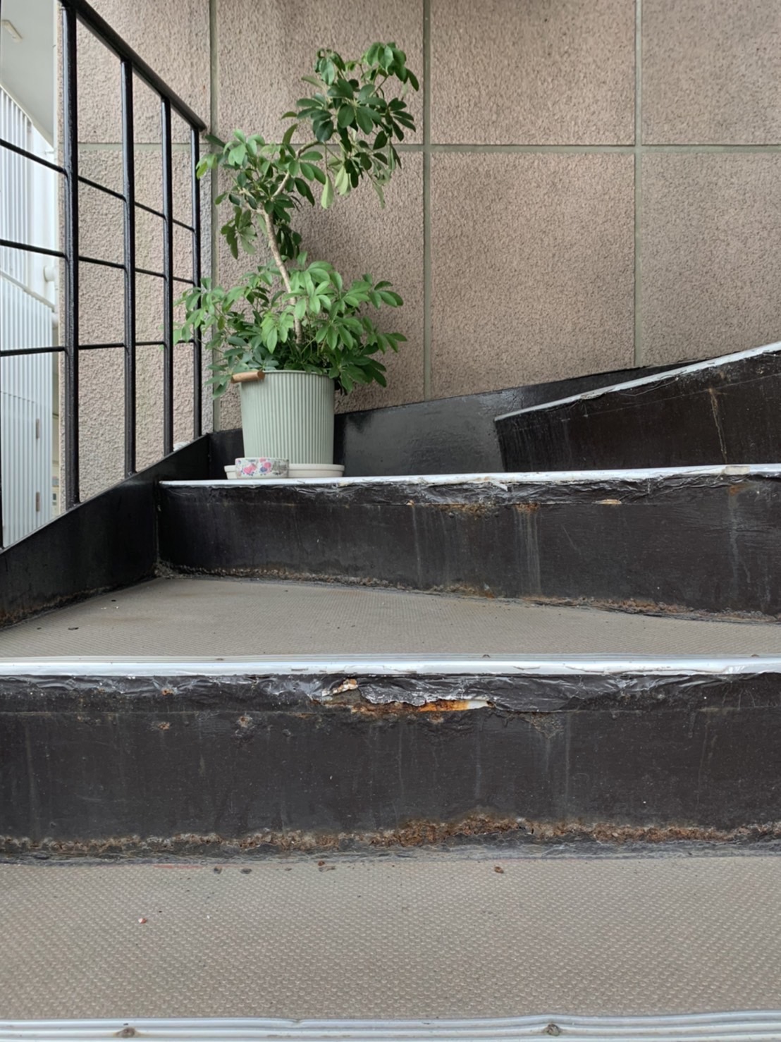 「家の階段もこんな感じの鉄骨の階段で、雨水が入り込んでさびが酷い。自分でテープを貼っているけれど、本格的に直して欲しい。」