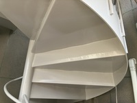 廻り階段なので、一段毎に寸法が違います。そのため大きめの材料を持参し、現場で採寸加工をして施工します。
