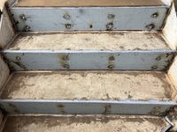 踏面に施工してある防滑シートの端部の処理が悪いので、シートの中に雨水が入り込んであちこちがさびてしまっています。これはかなりの重症です。