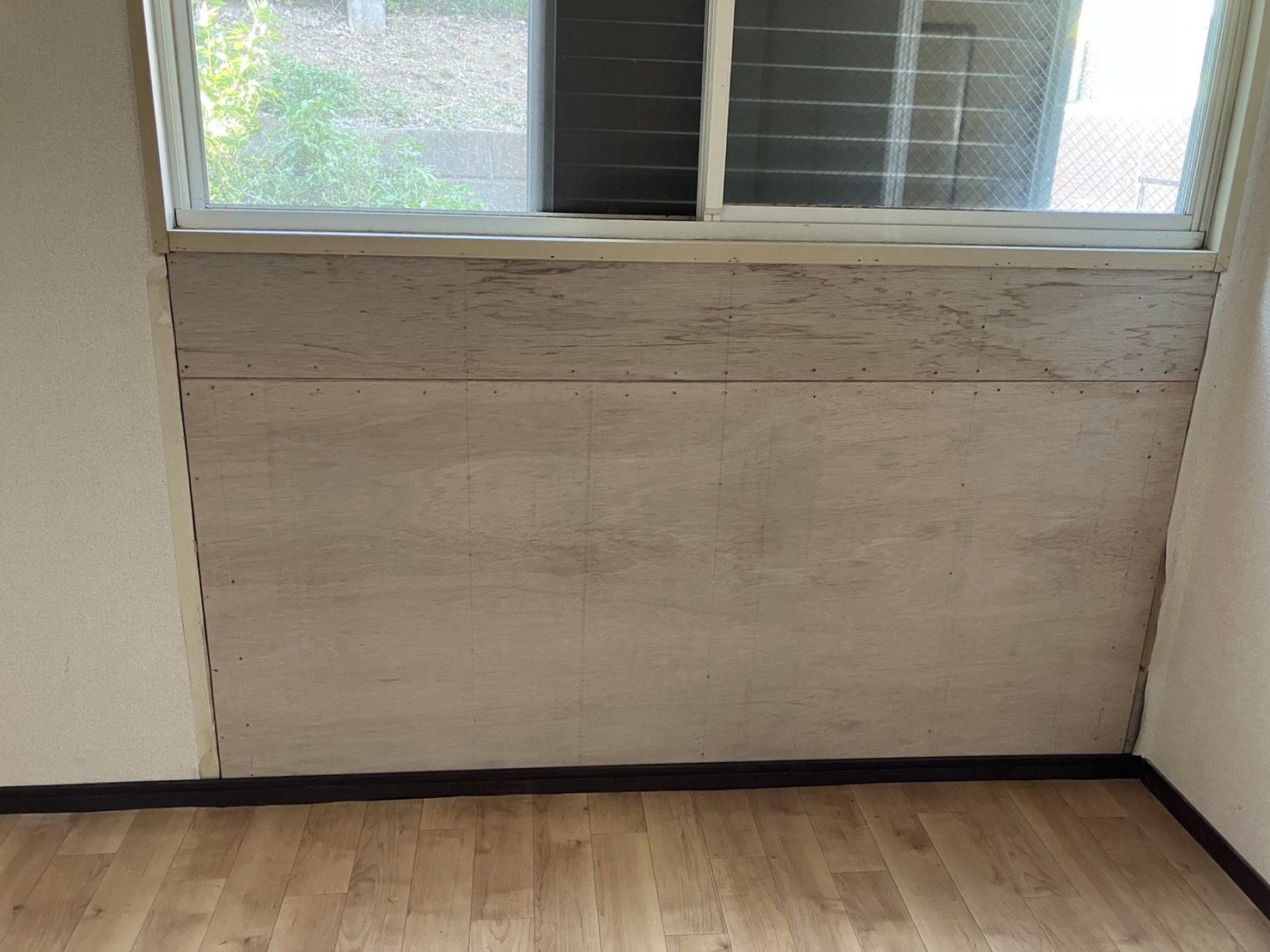 木下地が割と華奢に感じたので、改修した壁全体で強度を保つ様にプラスターボードではなく構造用合板を使用しました。防火の観点からはプラスターボードの方が良いのですがお客様と相談して強度を優先しました。 不燃のクロスで仕上げるので問題はありません。クロス工事は建物を管理をしている不動産屋さんの手配になるので、今回の工事はここまでです。【雨漏りや屋根のことでお困りの方】雨漏りバスターズは横浜市や藤沢市を中心に35年雨漏り修理や屋根工事を請け負っています。大工出身の私たちだからこそできる技術でその場しのぎではない、”2度と雨漏りしない屋根”に直します。ぜひ一度当社へご相談ください。まずはお電話でお話を聞き、現地調査→原因と対策工事をご案内→お見積りご提示をし、ご納得いただいてからの工事になります。