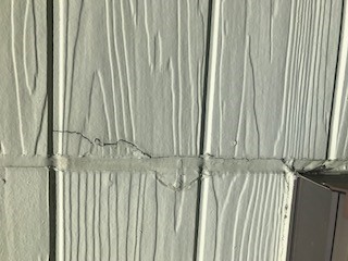 神奈川県横浜市戸塚区でサイディング外壁の修理です。以前に屋根からの雨漏りを治したお客様から外壁のサイディングが割れていると連絡を頂き確認に伺いました。二階のベランダの窓上のサイディングのジョイント部分に亀裂が入っています。よく見ると亀裂部分の上と下のジョイントのシーリングとサイディングの小口に隙間が出来て、そこから雨水が侵入してサイディングの劣化が始まったのか、湿気で木下地が伸縮した事が原因だと思われました。お客様に確認すると塗装工事は何年が前に施工してたとの事ですがその時にシーリングの打ち替えをしたかは分からないとの事でした。取り敢えず、応急処置をして欲しいとのご要望でしたので、その部分のシーリングの打ち替えをしました。既存のシーリングにカッターを入れて剥がしてみると、塗膜の下からボロボロになったシーリングが出て来ました。多分、前回の塗装工事の時にシーリング処理をせずに古いシーリングの上から塗装をしたと思われます。これでは、折角塗装工事をしてもあまり効果は期待出来ません。劣化してヒビ割れしたり粉を吹いている様な表面のシーリングに塗装をしても塗膜がキチンとは出来ないので、塗膜のヒビ割れや剥離が起こる場合が有ります。シーリングの補修後、隣の窓を確認するとやはりシーリング部分の塗膜がヒビ割れ、サイディングにも亀裂が入っていました。お客様は、全体のシーリング処理と塗装工事を検討中です。施工は、建物の状態を把握し適切な工法を選択出来る業者に任せる事が一番だと思います。金額の高低よりも大切な事だと思います。