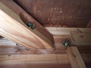 その面の葺き替えをご提案しました。またスレート瓦を使用すると何年か後に同じ事が起きてしまう可能性があるので今回は、ファイバーグラスの屋根材を使用する事にしました。スレート瓦は、屋根の木下地に経年劣化や湿気などで不陸などが生じた場合、硬い素材なので馴染む事が無くヒビ割れしたりします。また塗膜が弱くなると雨水を吸いやはりヒビ割れを起こす場合が有ります。ファイバーグラスの屋根材は、柔らかく屋根の木下地の癖に追従して、表面もセラミック処理なので永年メンテナンスが不用です。先ずは、既存のスレート瓦を撤去して、下地補正の耐水合板を貼ります。