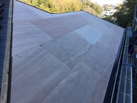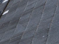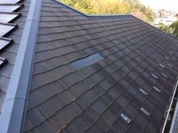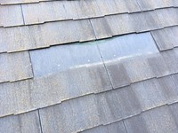 神奈川県横浜市泉区でスレート瓦屋根の修理工事です。強風で屋根のスレート瓦が飛ばされてしまいました。屋根に上がり確認すると風に煽られてスレート瓦が割れて飛んでしまった様です。他にもクラックが入っている部分が何箇所か有りました。屋根の木下地の影響か日当たりなど立地条件の影響かは判りませんが、どちらにしても部分補修では再発の可能性が有るので