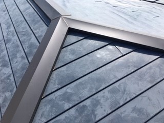 神奈川県横浜市金沢区で鋼板屋根からの雨漏りの修繕改修工事です。お客様から「何年か前に鋼板の横葺屋根に取り替えたがその後、強い雨の時に下の天井に雨染みが出来る様になり、施工業者は勿論の事、何軒かの雨漏りの修繕業者にも来てもらったが一向に治らない。」との問い合わせを頂き、現調に伺いました。天井の雨染みの位置を確認して屋根に上がってみると位置的には屋根の寄棟の頂点か少し下がった辺りですが、その近辺に問題が有りそうな箇所は確認出来ませんでした。雨漏りの発生している周辺は業者によりシーリング処理が施工されて、最後の業者により棟は新しく規格の物より一回り大きなものに付け替えられていました。これでも雨漏りは改善されていませんでした。他の業者の施工のお陰で棟や取り合い部分のシーリング処理などでは治らない事が判明していましたので、最終的に屋根の葺き替えを提案しました。勾配の少ない屋根なので鋼板の横葺屋根のように重ね部分に雨水が入り溜まってしまう形状の屋根材では溜まった雨水が外に出ず横に走って、棟の下の切断面から屋根下地に直接滴ってしまっている事が、考えられました。これを防ぐには、葺き替えの一択しか有りません。屋根材はアルミ製で耐久性も良く高価な物でまだまだ使用出来そうでしたが、雨漏りをしていれば何の意味も有りません。