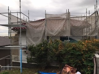 先ずは、安全対策の足場の設置です。