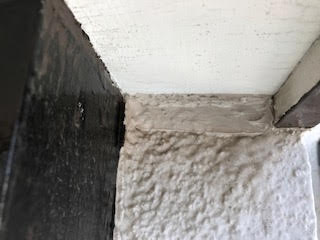 まず1箇所は、2階の出窓の屋根の軒天の壁際部分です。