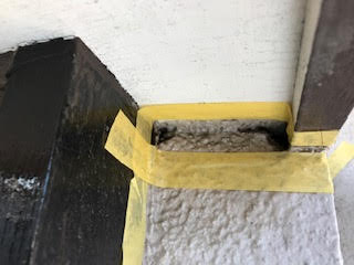 養生テープを貼ってある箇所の両側の入隅部分にモルタルが塗り込