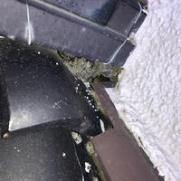 上の写真の様に本瓦の壁際の処理に取り付けてある鋼板と瓦やモルタル壁の何箇所かにかなり大きな隙間が有ります。