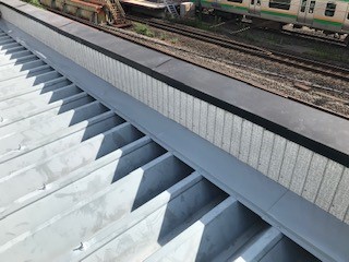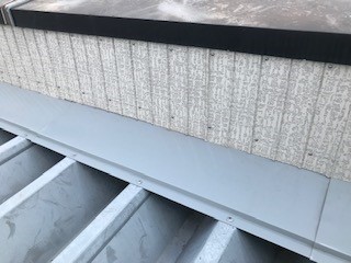 雨押部材の取替には棟側のパラペットの壁の鋼板の貼り替えも必要となります。