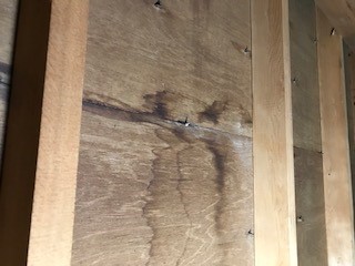 上の写真のように、野地板(のじいた)の継ぎ目から何箇所か雨漏りが確認出来ます。