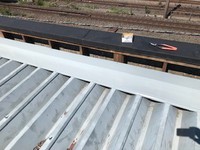 建物に上ってみると棟の壁際の雨押部材の折り下がりを起して有りました。