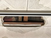 ご相談者様によるとかなり以前から雨漏りが起きていたようで、天井材が雨水でふやけて一部が落ちてしまいました。
