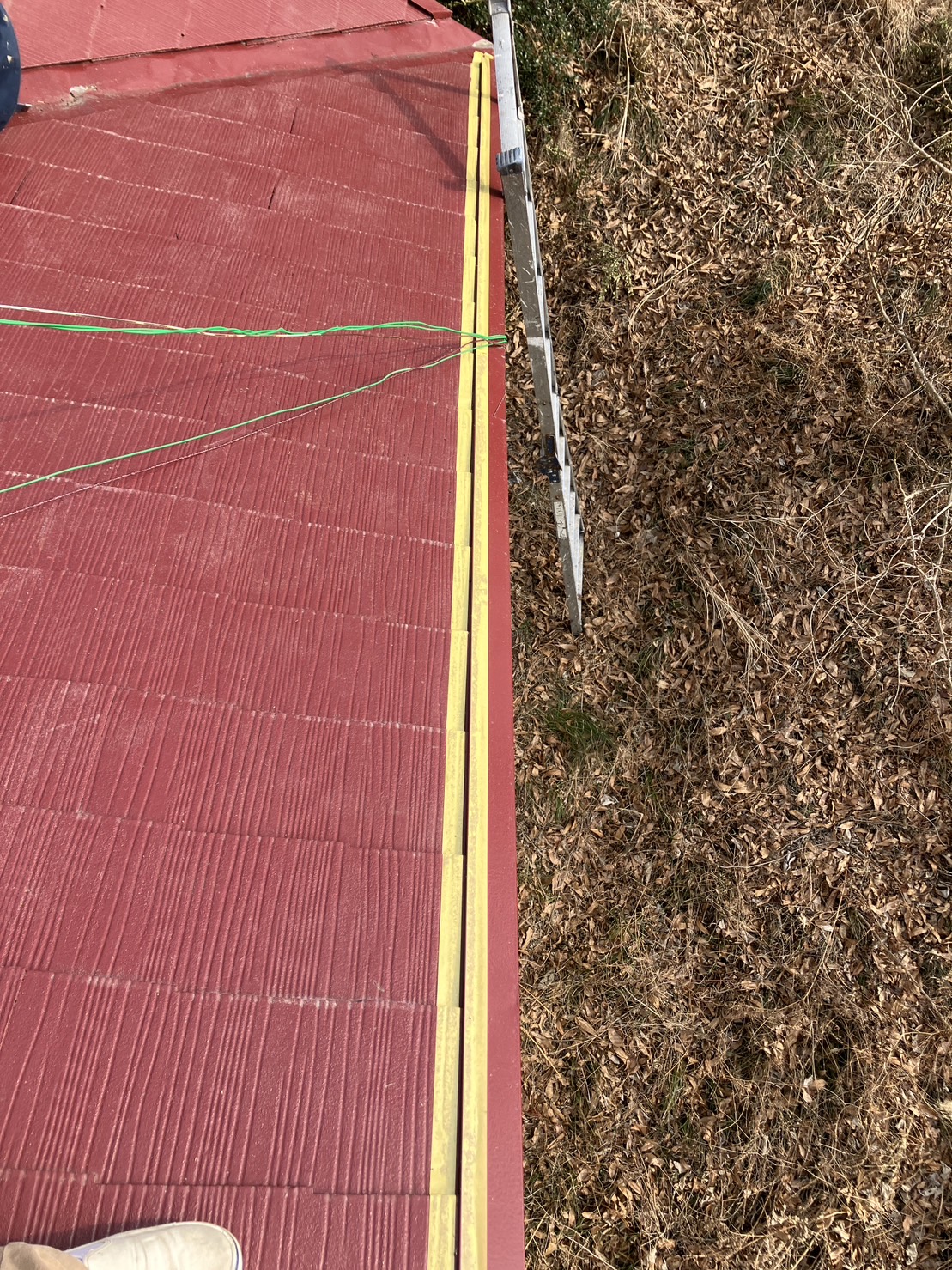屋根に上がって雨漏りの痕跡の近辺を確認しましたが