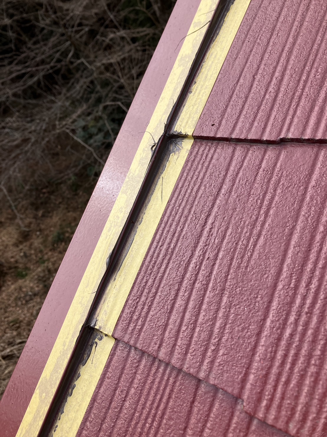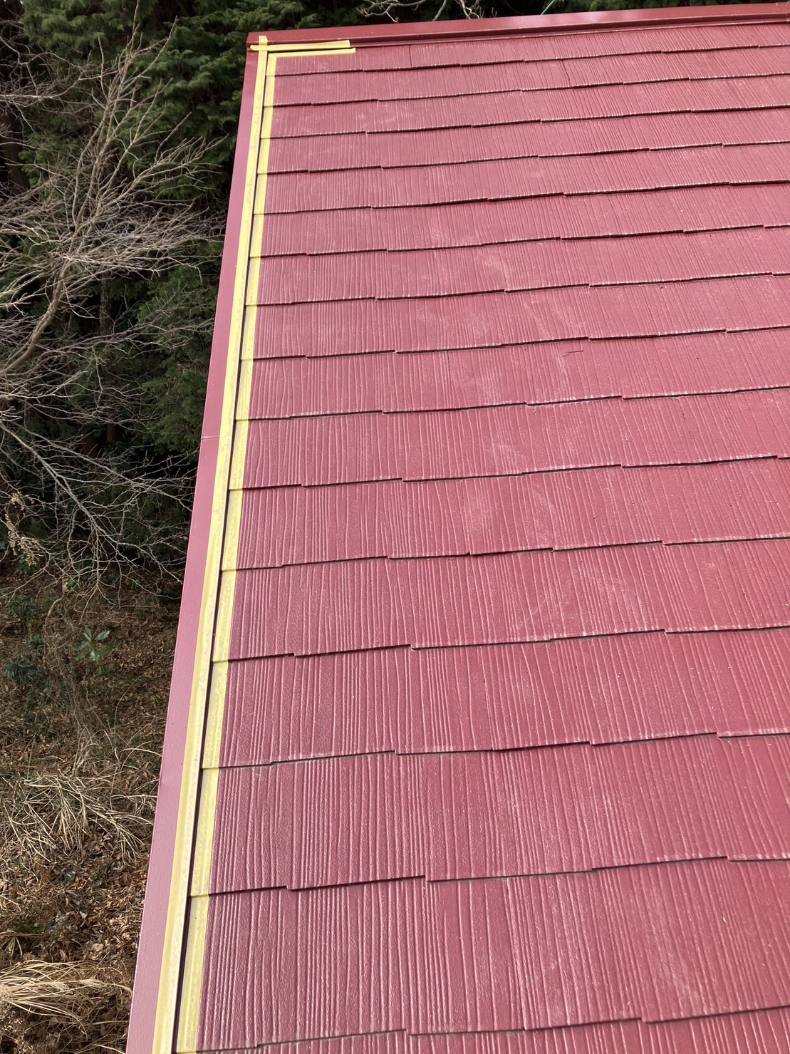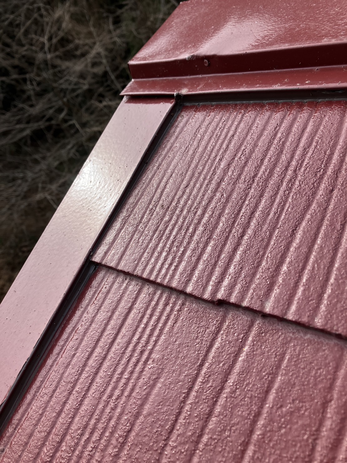 なるべく違和感のないように鋼板部材とスレート瓦の取り合い部分のみをシーリング処理しました。