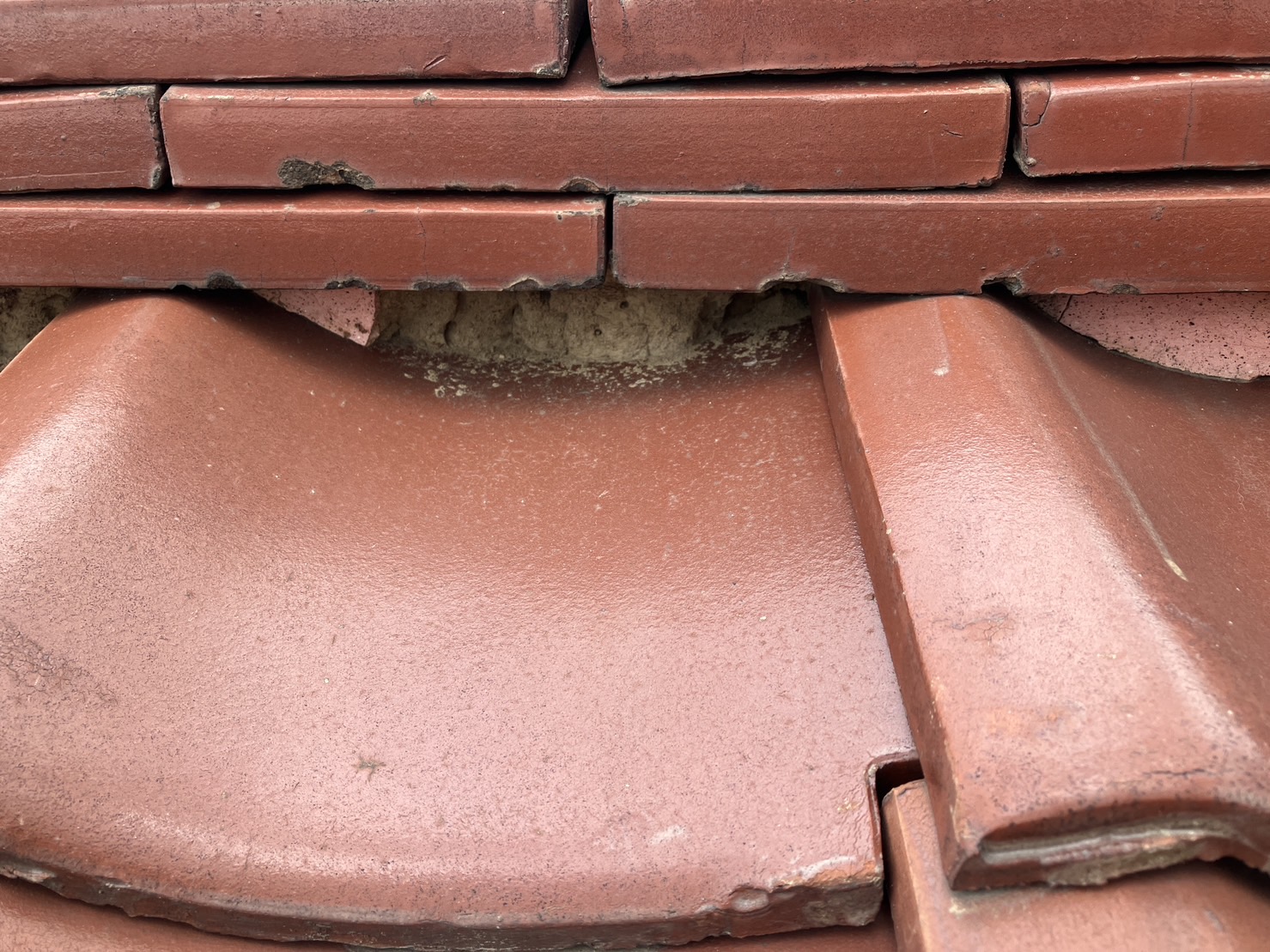 また、劣化のせいか割れている瓦もありました。