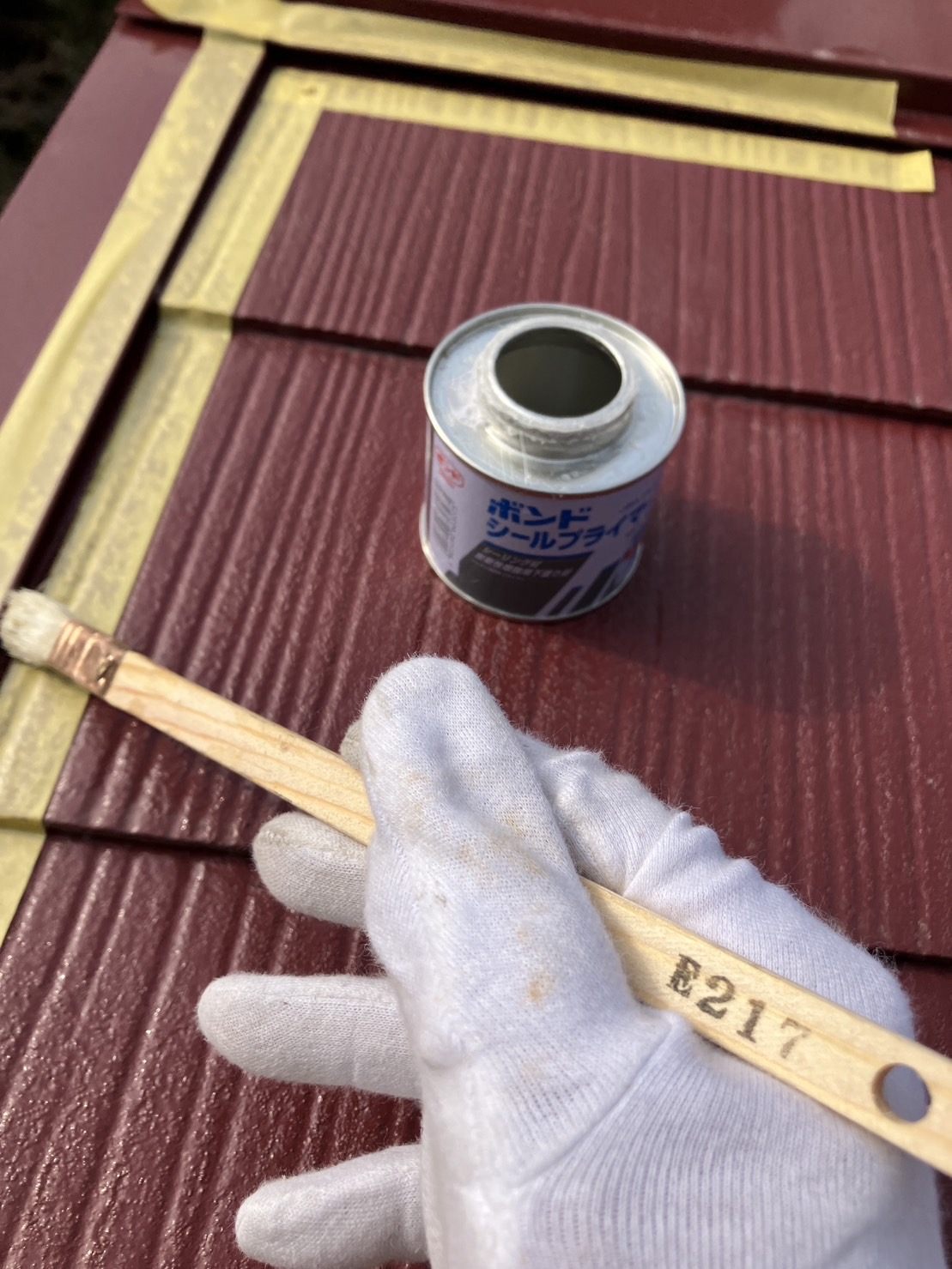 マスキングの後、プライマーを塗り下地処理をします。